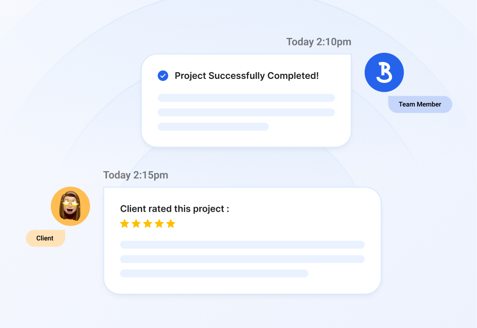 Upload from Figma, Canva, Google Docs. Clients review and approve deliverables.